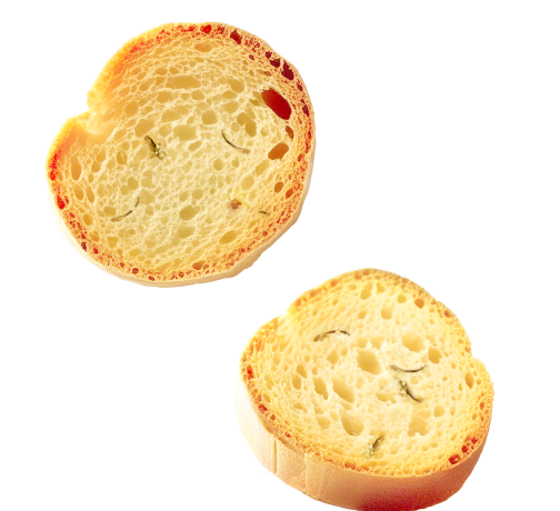 • ingrédients : eau, amidon de maïs, farine de riz, huile d'olive extra-vierge sicilienne (10%), sucre, levure de bière, épaississants : farine de guar ; fibres végétales : psyllium, hydroxypropylméthylcellulose ; sel, olives noires, origan, romarin, câpres.