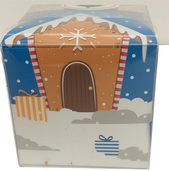 Joli CUBE festif contenant 24 figurines de Noël (PÈRE NOËL, SAPIN, RENNE, SUCRE D'ORGE, CADEAU, CHAUSSETTE DE NOËL) en chocolat NOIR 60% ONCTUEUX BIO vegan sans allergènes Exquidia, créées dans notre atelier.