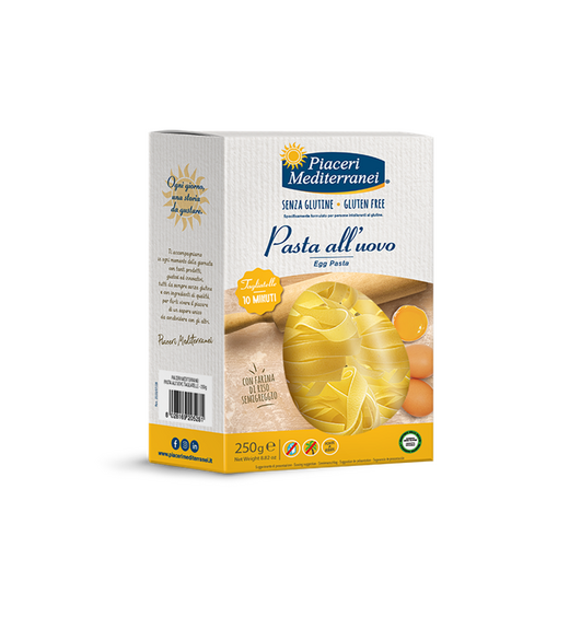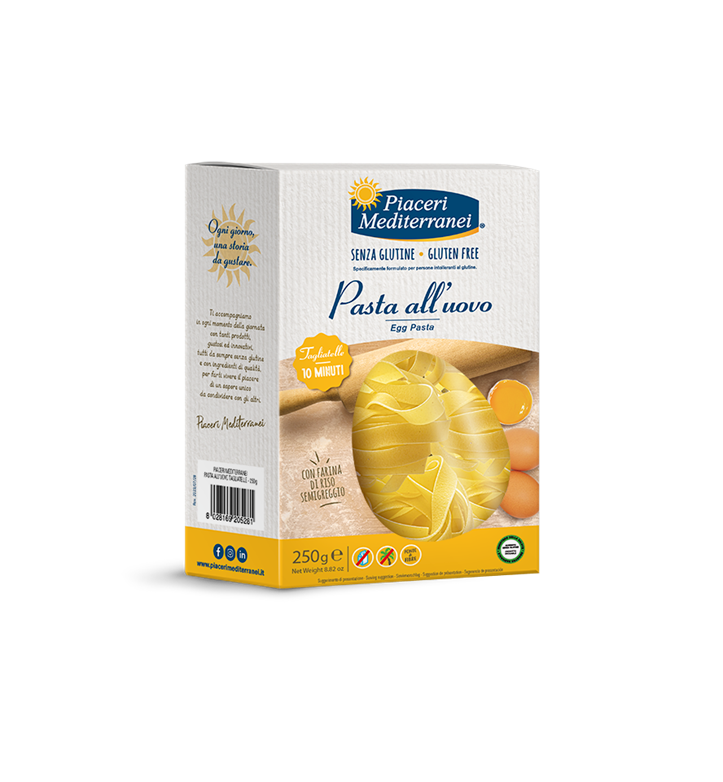 TAGLIATELLES aux oeufs et au riz semi-intégral sans gluten, sans lait, sans lactose, sans coque, sans arachide, sans céleri, sans sésame, sans moutarde, sans poisson, sans mollusque, sans crustacé, sans maïs, sans sulfites, sans huile de palme Piaceri Mediterranei