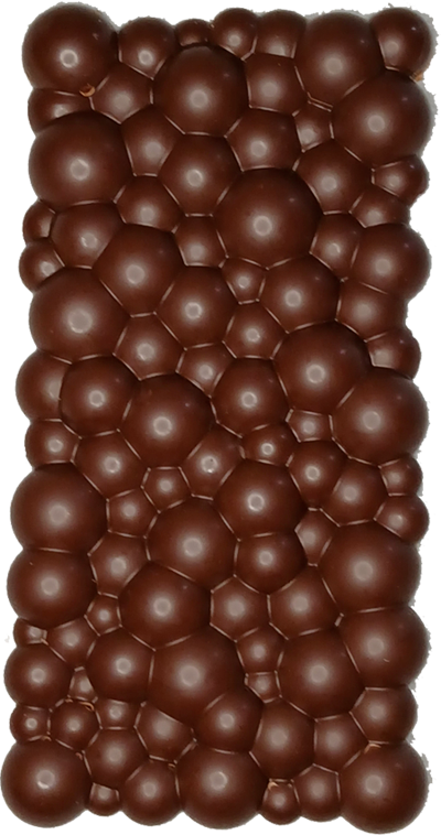 GRANDE tablette à BULLES pétillantes en chocolat 47% adouci à la poudre de riz BIO vegan sans allergènes Exquidia, créée dans notre atelier.