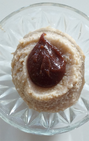 1️⃣Ajouter de la farine de châtaigne et un peu d'huile à la farine précuite de riz intégral.