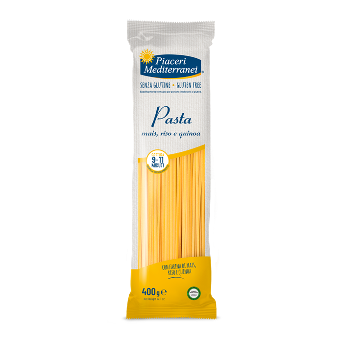 LINGUINE (maïs, riz, quinoa) vegan, sans gluten, sans lait, sans lactose, sans œufs, sans fruits à coque, sans arachide, sans céleri, sans sésame, sans poisson, sans mollusque, sans crustacé, sans sulfites Piaceri Mediterranei. Grâce à leur polyvalence, elles s'adaptent parfaitement des sauces les plus simples aux préparations les plus élaborées, tout en conservant une bonne résistance à la cuisson.